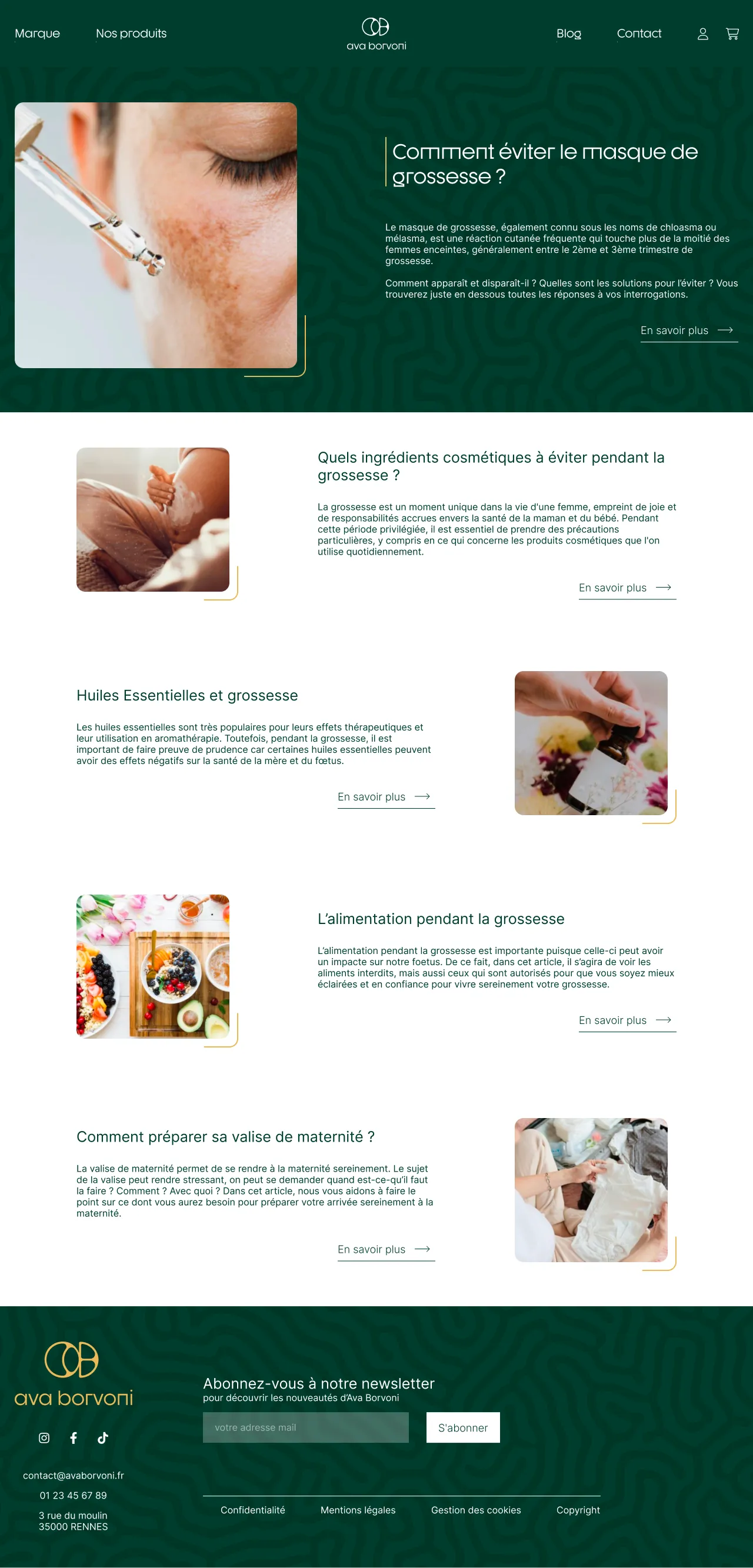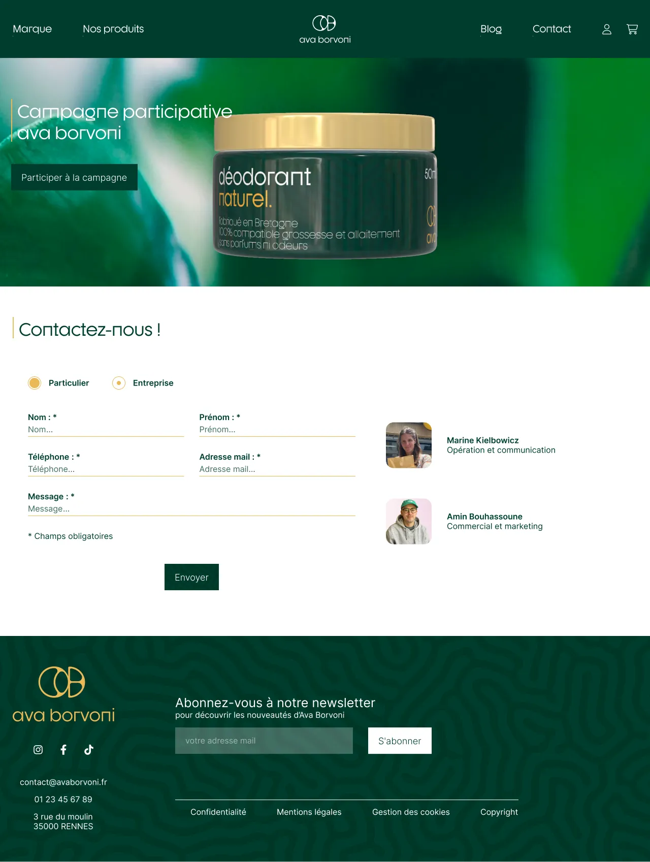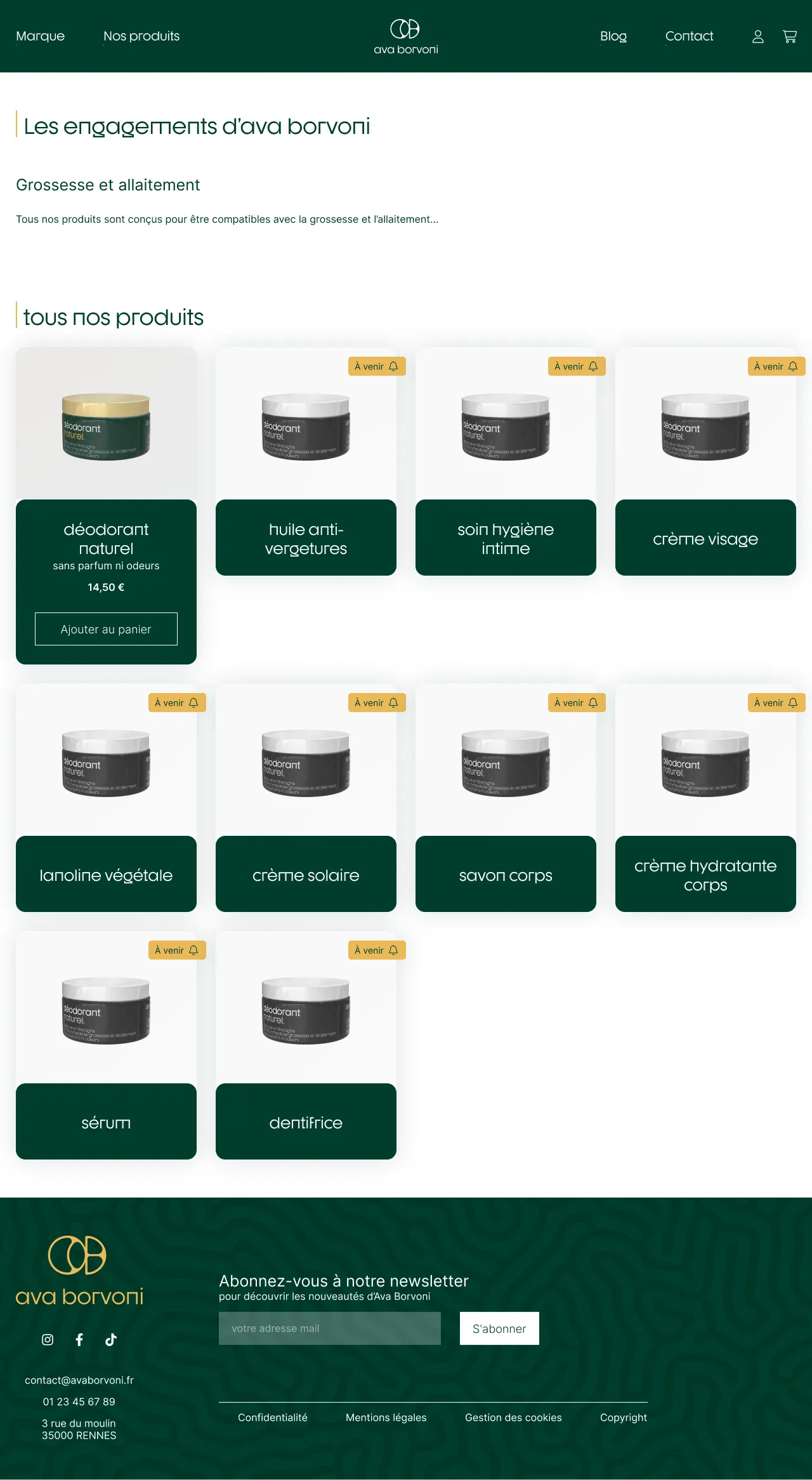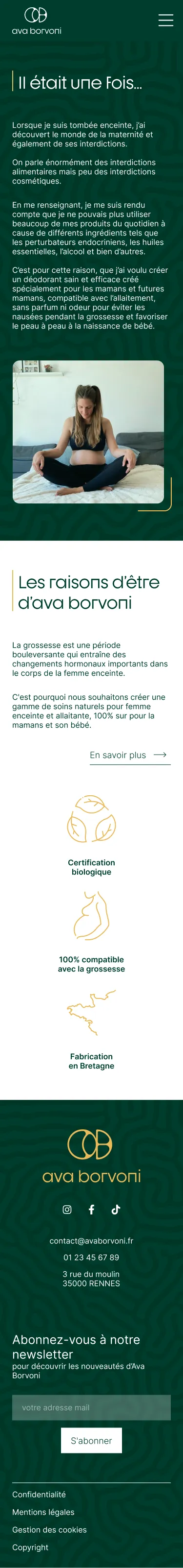 Au sein de mon groupe, j'ai été en charge du développement des maquettes ergonomiques et graphiques du site web de la marque fictive Ava Borvoni.