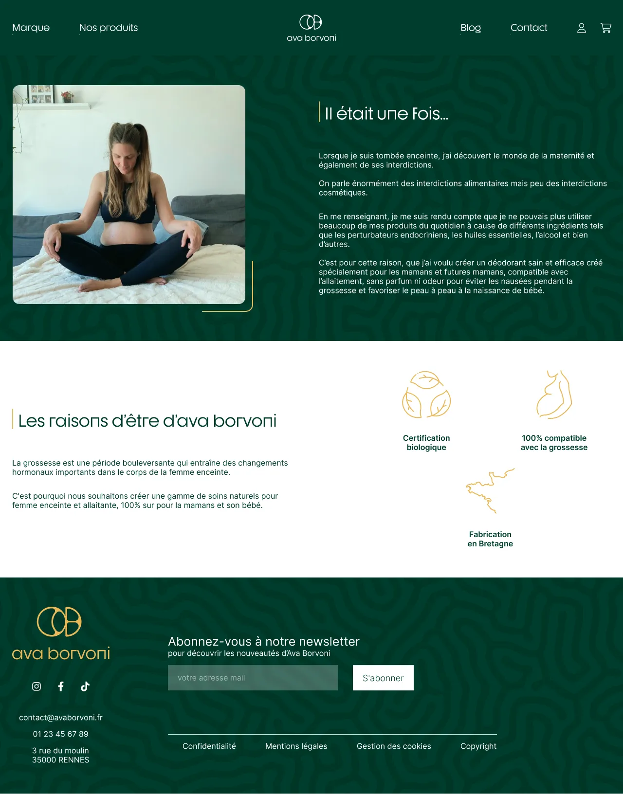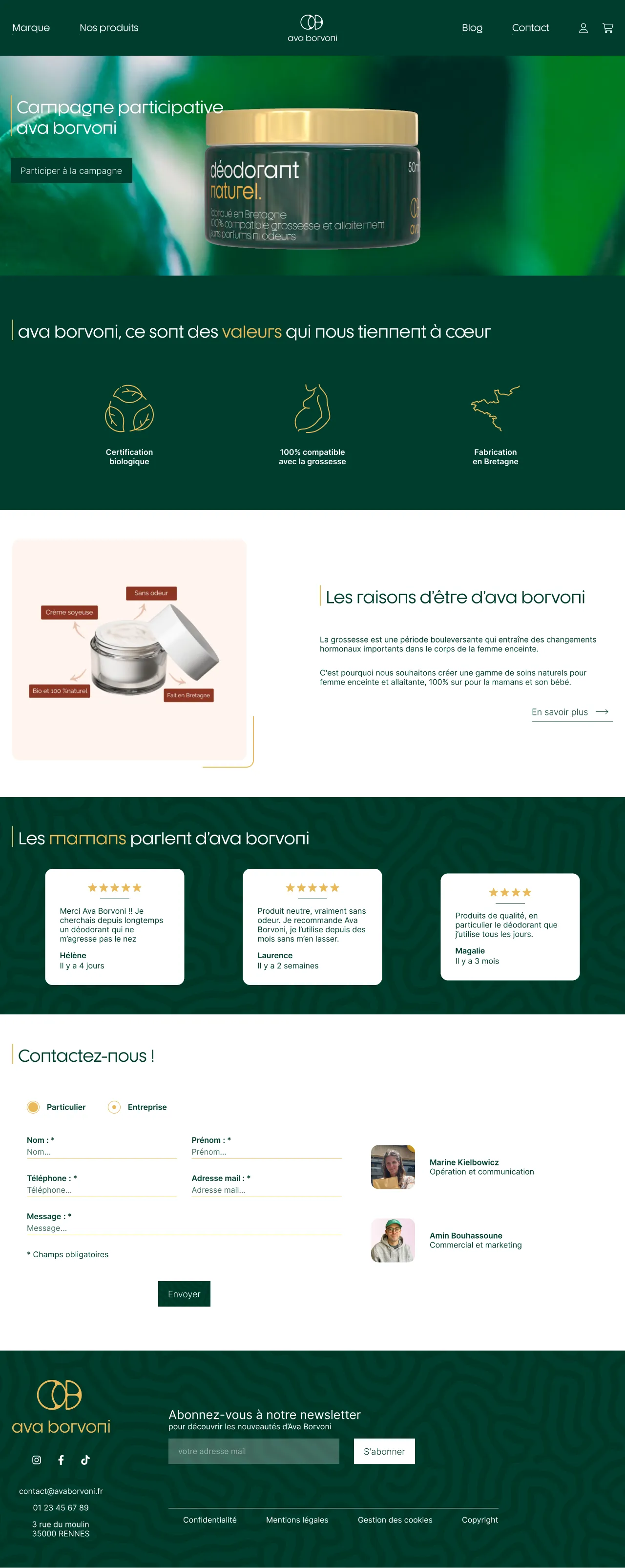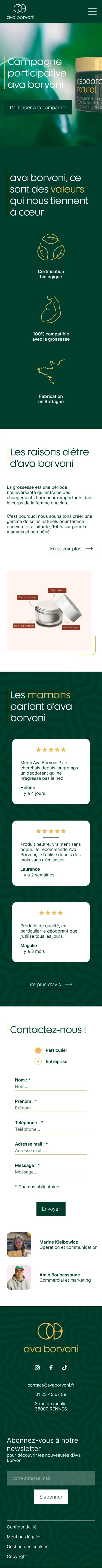 Au sein de mon groupe, j'ai été en charge du développement des maquettes ergonomiques et graphiques du site web de la marque fictive Ava Borvoni.