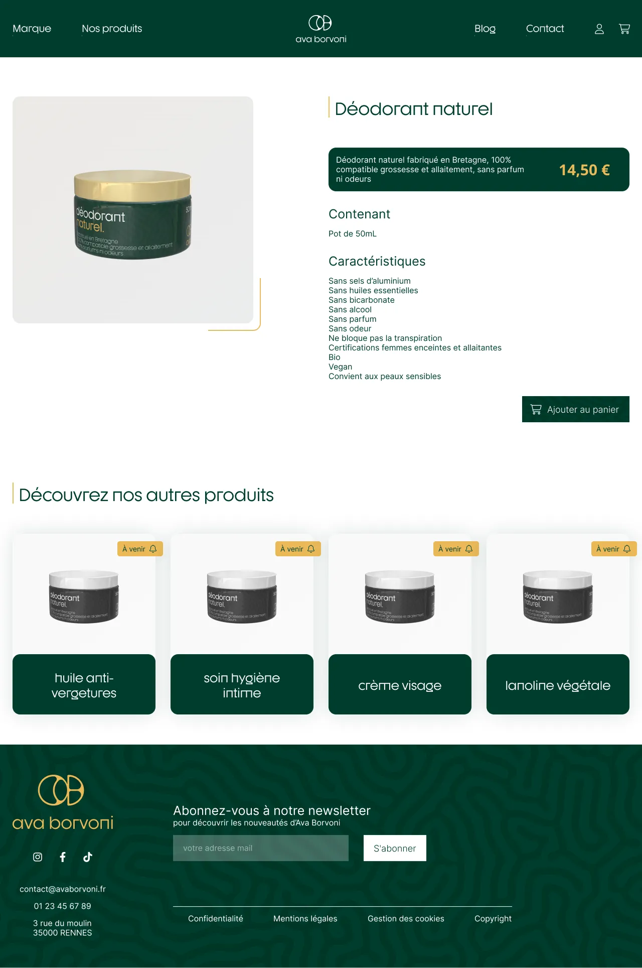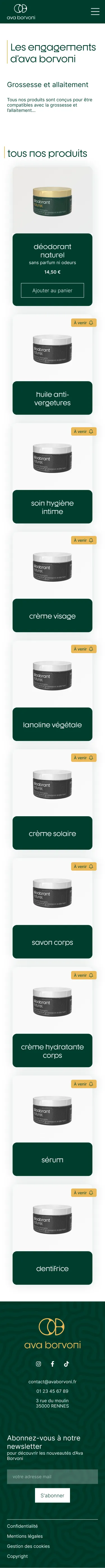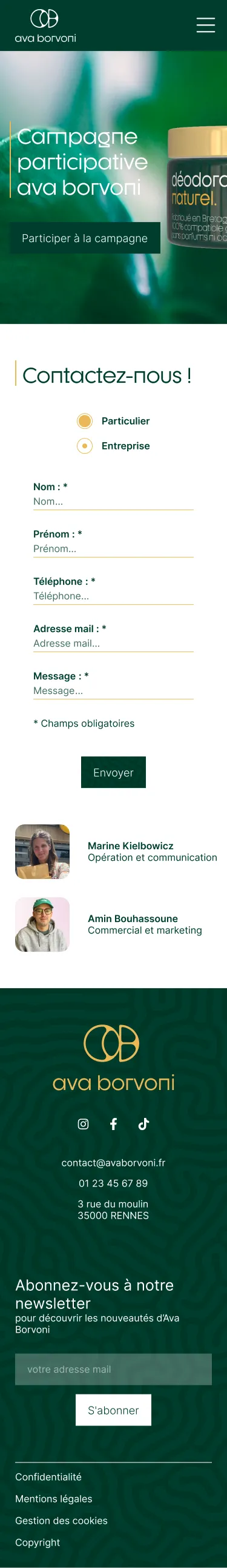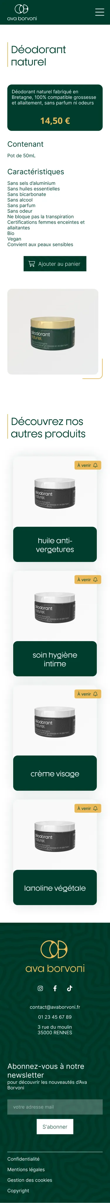 Au sein de mon groupe, j'ai été en charge du développement des maquettes ergonomiques et graphiques du site web de la marque fictive Ava Borvoni.